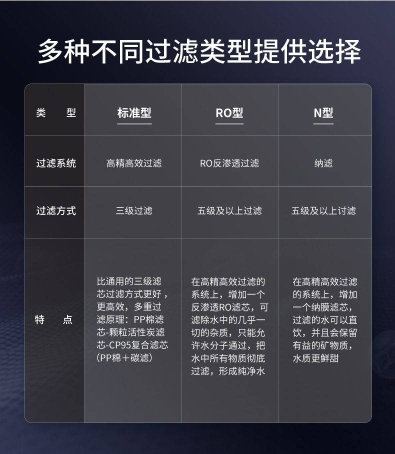 此款外觀三種不同過濾配置對應貨號: